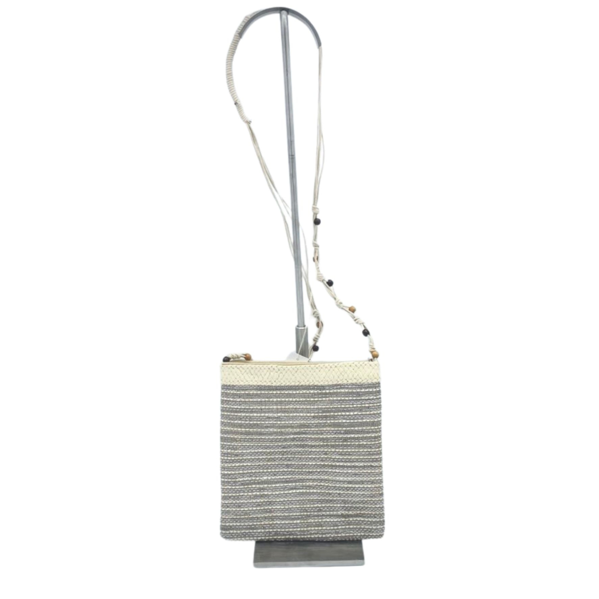 This shoulder bag in grey paper rope woven with silver thread looks both elegant and original!