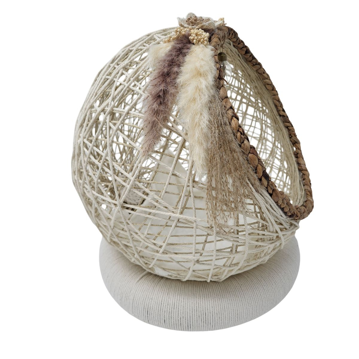 The bubble is delicately decorated with a raffia braid, a feather, or other natural accessories, adding a handcrafted and bohemian touch. Its light and neutral colors blend harmoniously into any interior, whether modern, Scandinavian, or more traditional. Thanks to its airy design, the bubble allows air to circulate while creating a truly cozy nest. It can be placed on the floor or hung, depending on your decor and your pet's preferences.