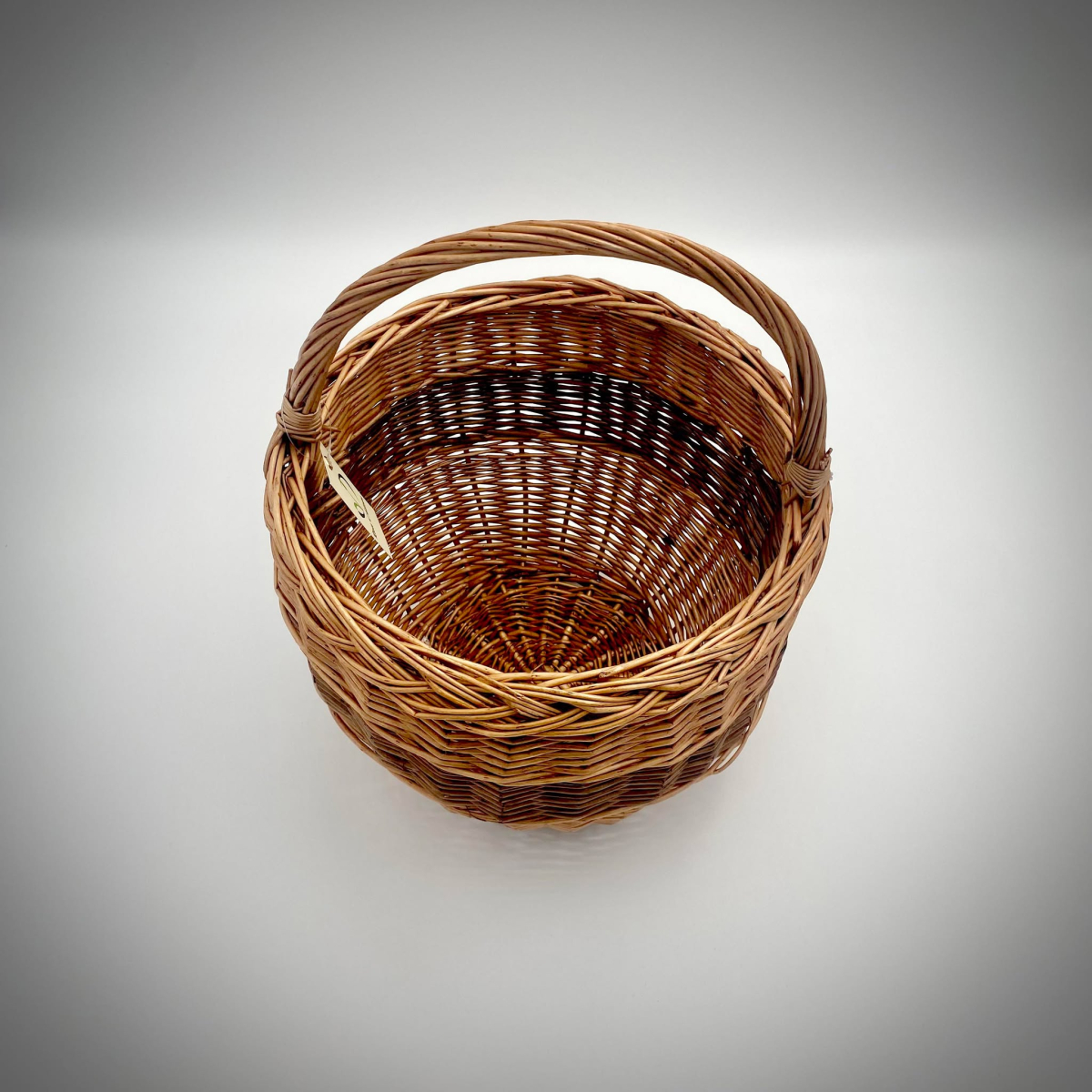 Voici notre panier rond en osier, il est généralement fabriqué à partir de tiges d'osier naturel, avec une teinte douce et claire, souvent appelé "buff".