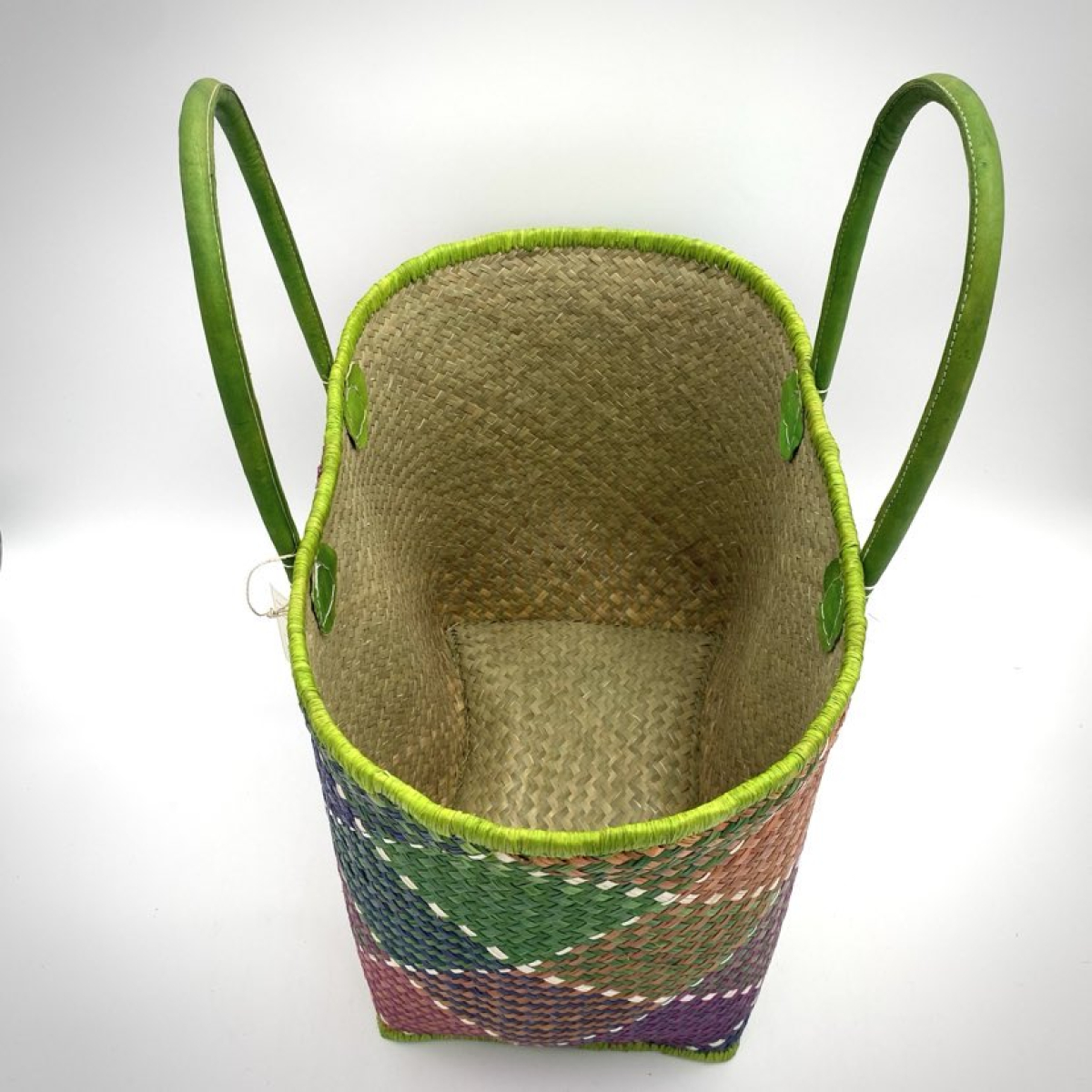 Le mélange de couleurs et le cuir vert en font un accessoire unique.