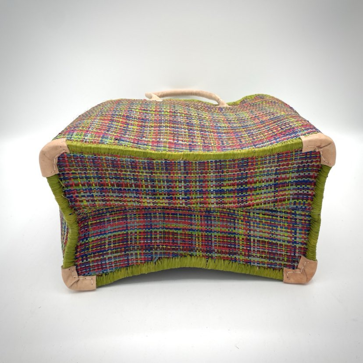 Ce cabas en raphia avec tissage multicolore en raphia.