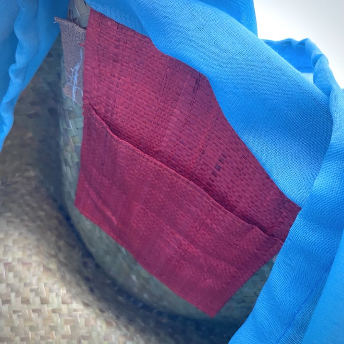Il possède une poche en raphia à l'interieur, et son système de fermeture est un cordon à serrer.