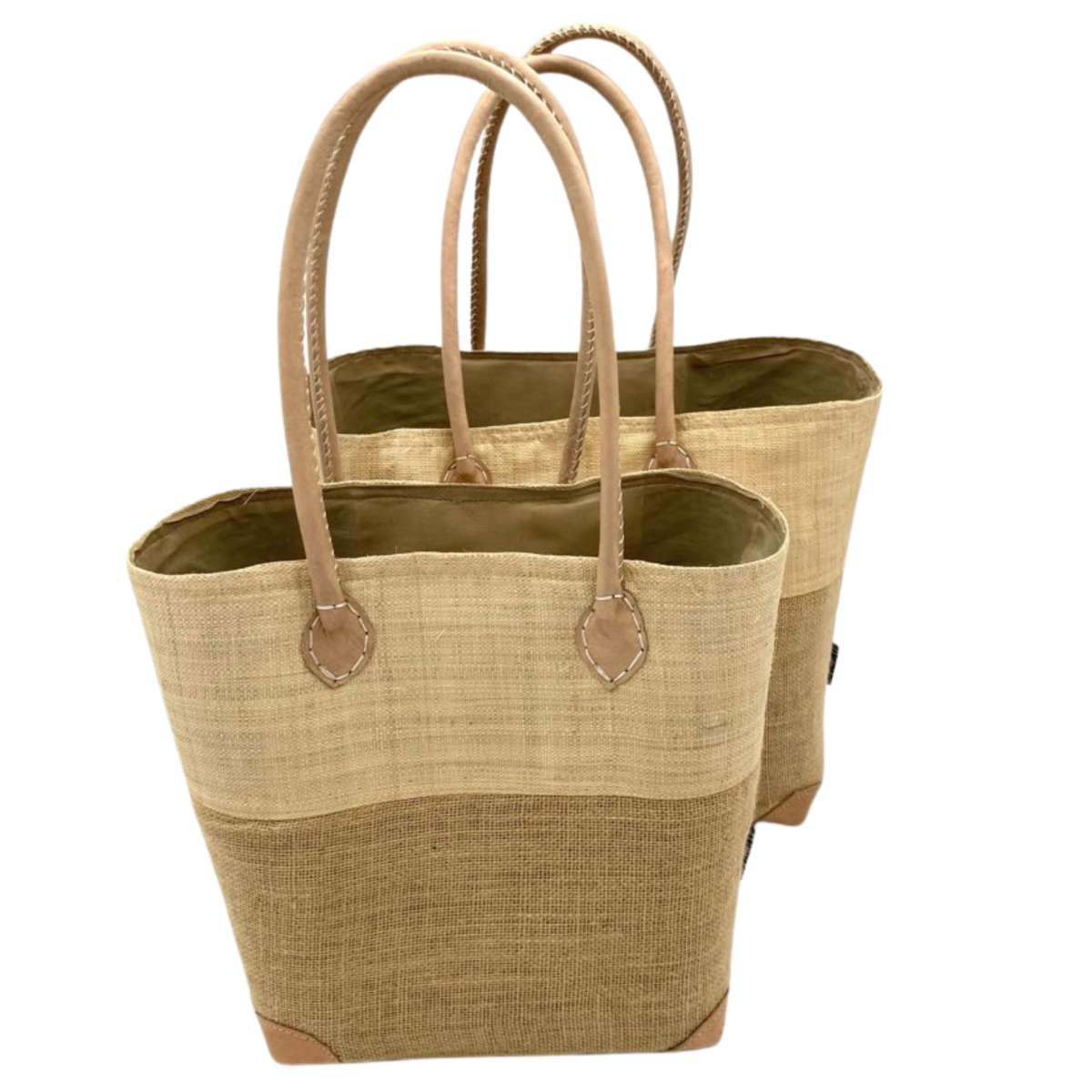 Les coins sont renforcés en cuir pour plus de durabilité, tandis que les anses en cuir assurent un porté confortable et chic.