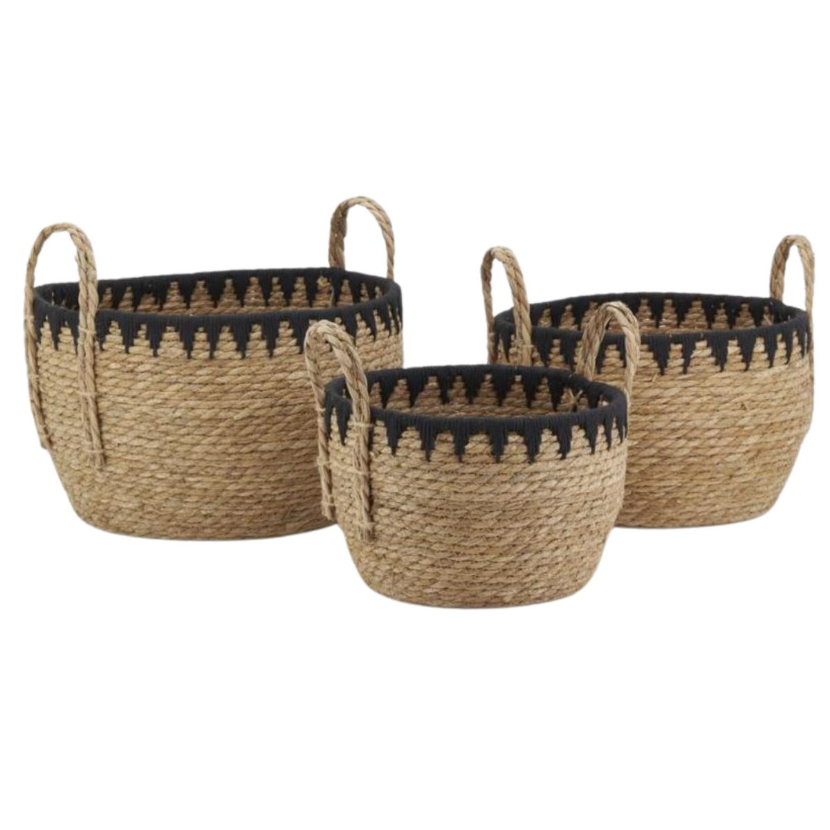 Apportez une touche naturelle et chaleureuse à votre intérieur avec ce cache-pot en jonc tressé, sublimé par une délicate bordure en laine noire.