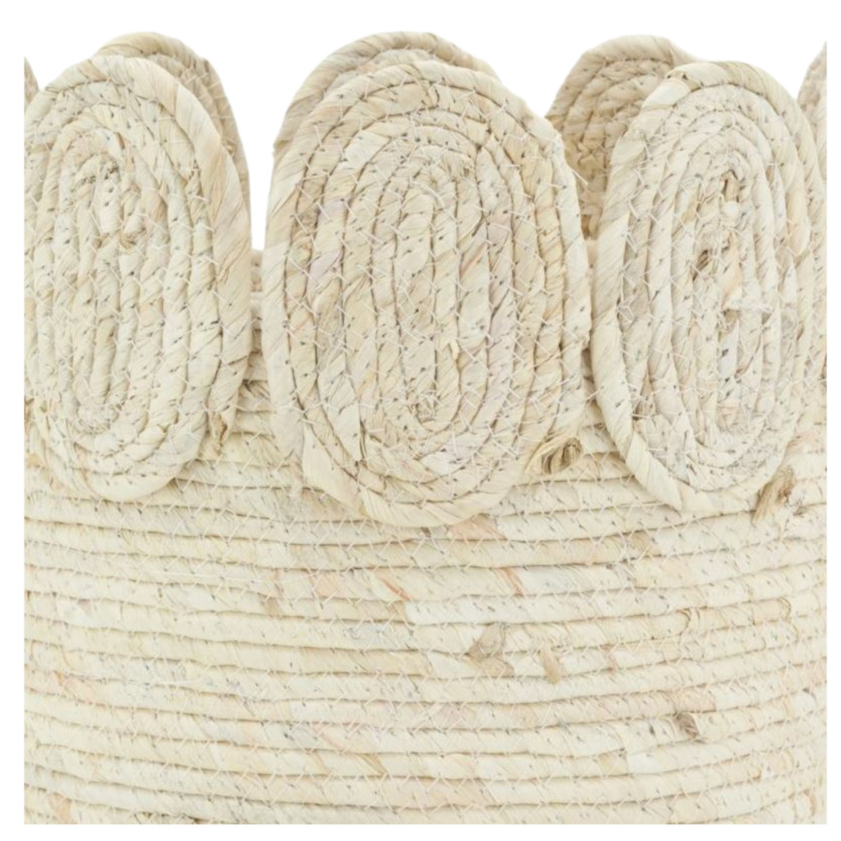 Faites fleurir votre décoration intérieure grâce à ces cache-pots en paille de maïs tressée, délicatement ornés d’une bordure en forme de rosace.