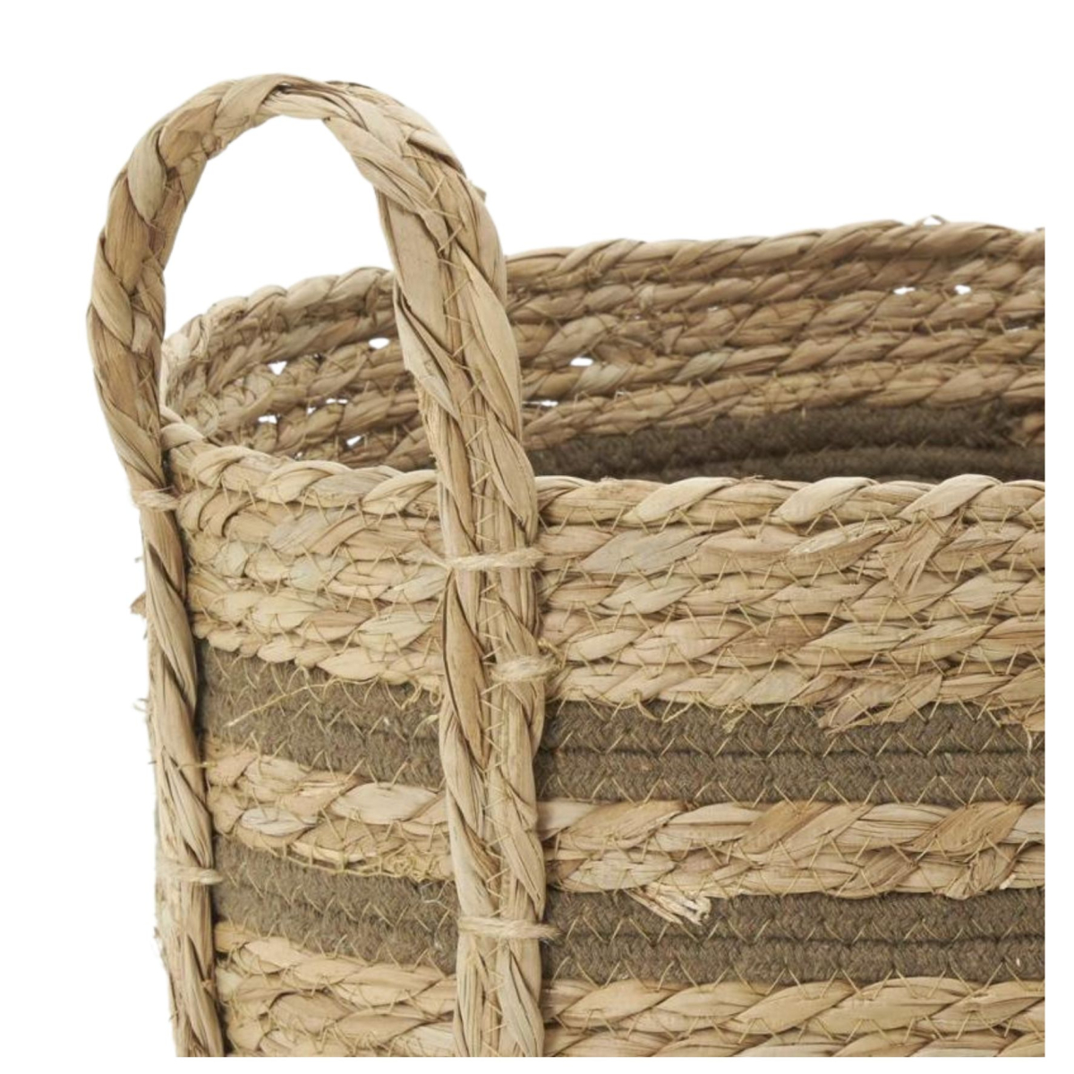 Les anses en jonc facilitent le transport tout en renforçant le style naturel du cache-pot.