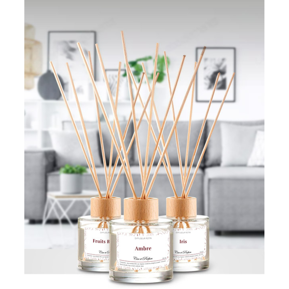 Les tiges de rotin s’imprègnent du parfum et assurent une diffusion sur plusieurs semaines.
